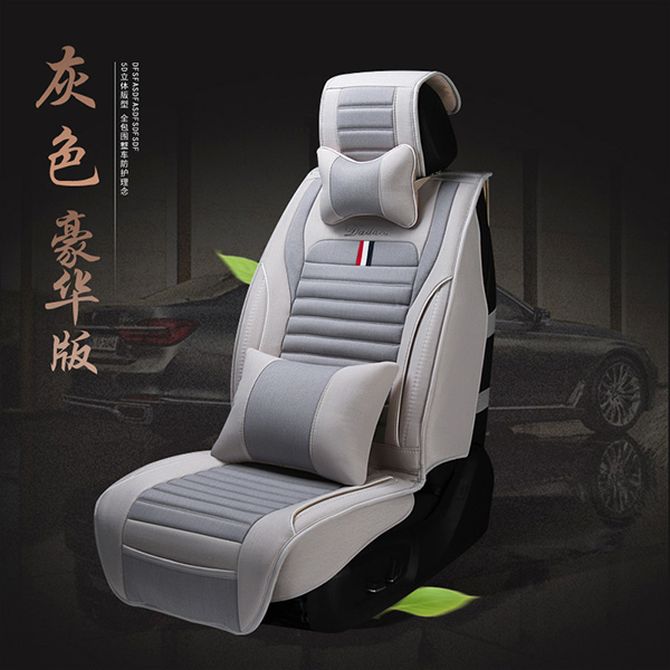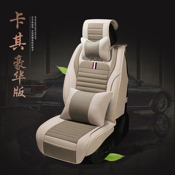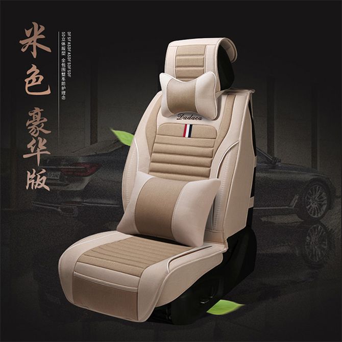 车邦士( 豪华版 两个头枕 两个抱枕)夏季 汽车 座套 亚麻 四季 卡通 时尚 男女 座椅套 全包 坐垫 亚麻豪华版1803