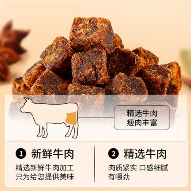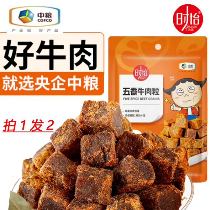 (拍1发2) 中粮五香牛肉粒50g 零食牛肉干高蛋白休闲食品 居家办公必备,高蛋白质含量,肉质细腻,嚼劲十足
