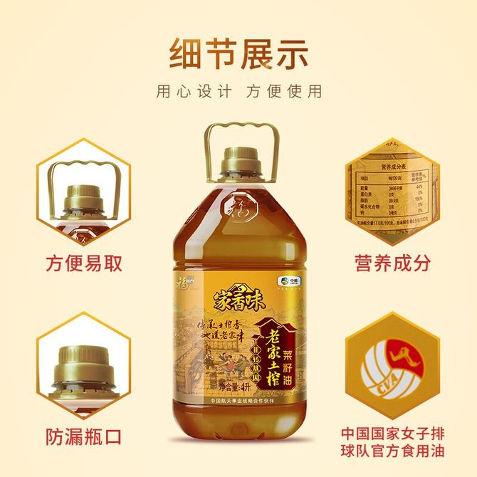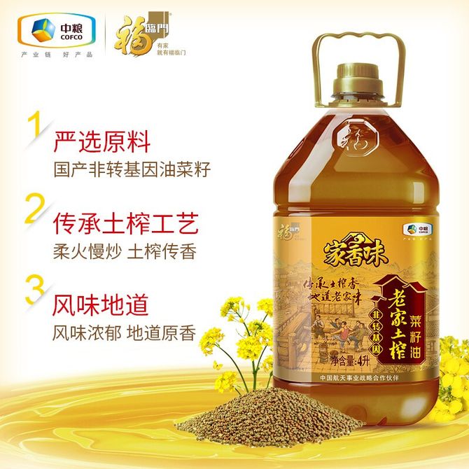福临门 食用油 家香味老家土榨菜籽油4L 非转基因 中粮出品