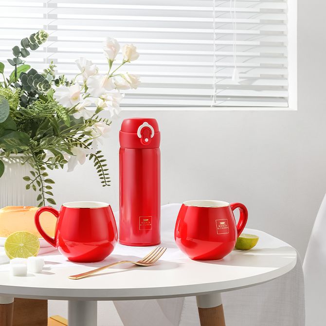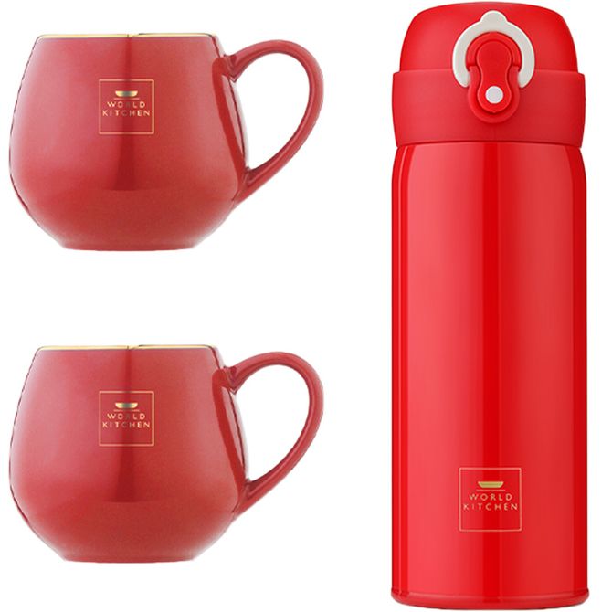 康宁VISIONS WORLD KITCHEN乐欣美佳保温杯杯子马克杯组合三件组-红 WK-BZSJZ3/KZ/RD