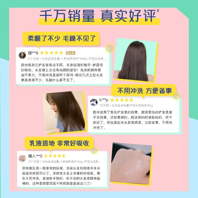 飘柔免洗护发素人参滋养修护润发乳 发膜 380g (适合中性干性发质 针对干枯染烫受损)