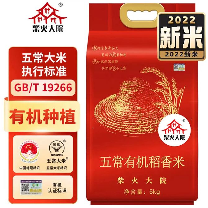 柴火大院 五常有机稻香米 5kg (五常大米 稻花香2号 当季新米 东北大米)