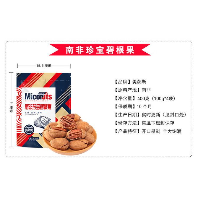 南非珍宝碧根果100g*4袋