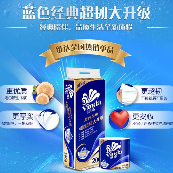 组合销售 产品介绍 产品规格 售后服务 产品咨询 发现好货 维达卷纸 卫生纸实惠装厕纸家用厕所纸巾手纸整箱批有芯大卷家庭装 1200-2300 里程 维达 Vinda 卷纸 140g/卷*10卷 蓝色经典3层卫生纸 1300 里程 心相印抽纸 茶语丝享系列 量贩家庭装 3层*100抽*4包(茶香 压花) 1100 里程 心相印 经典系列 二层面巾纸 180抽*6包*1提 1100 里程 维达Vinda 超韧系列抽纸(3层*130抽*6包) 原生木浆卫生餐巾纸婴儿面巾纸 6包优惠装 1100 里程