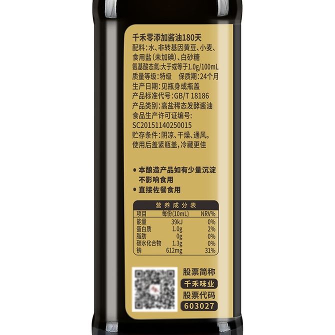 不含添加剂 匠心酿造 零添加 千禾酿造好酱油