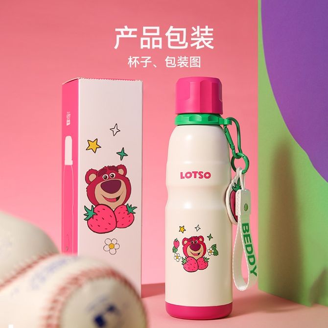 杯具熊(BEDDYBEAR)运动杯316不锈钢保温杯550ml容量便携式水杯卡通可爱YD801-600运动杯—草莓熊