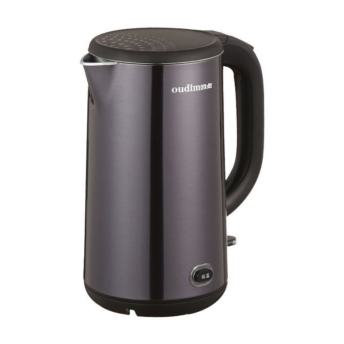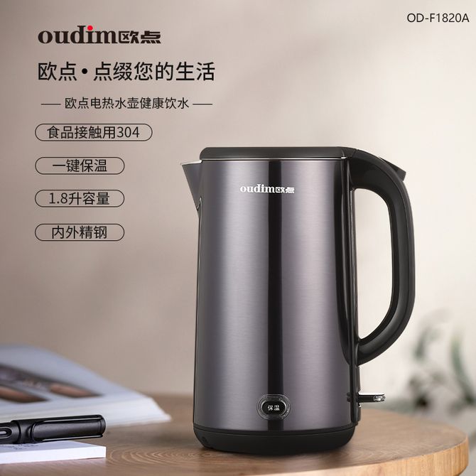欧点(oudim) 电热水壶容量1.8L双层防烫烧水壶304不锈钢开水壶自动断电无缝内胆保温开水煲 【防烫保温】金属灰 1.8L