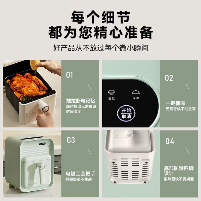 组合销售 产品介绍 产品规格 售后服务 产品咨询 发现好货 美的/Midea 空气炸锅 家用5升可视炸锅金属内腔体微蒸汽多功能智能双旋控温电炸锅 KZE5089 10900 里程 奥克斯/AUX 空气炸锅5L电炸锅多功能大容量无油电炸锅空气炸锅机械款 4.5L 机械款 AUX-3002M 复古绿 6500 里程 奥克斯 电火锅 电炒锅 电煮锅 火锅锅 电锅一体锅 家用多功能料理烤肉电热锅 多用途锅大容量 无笼款 5L 4800 里程 苏泊尔(SUPOR)多功能锅料理锅电火锅多用途电煮锅不粘电热锅家用电炒锅方形烤盘煎烤锅JD3424D08-150 YL 13000 里程 苏泊尔(SUPOR)多用途锅电火锅QC系列家用5.5L电蒸锅煎烤机多功能网红锅JD3424D808 13400 里程