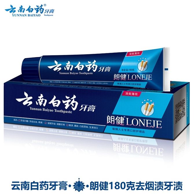 云南白药牙膏 朗健180克 去烟渍黄牙渍牙垢祛除异味清新口气