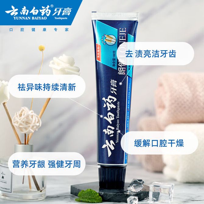 - 云南白药牙膏留兰香型180g 去黄牙垢口气清新减轻牙龈问题