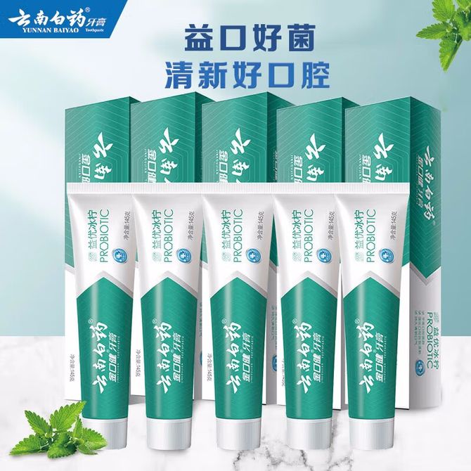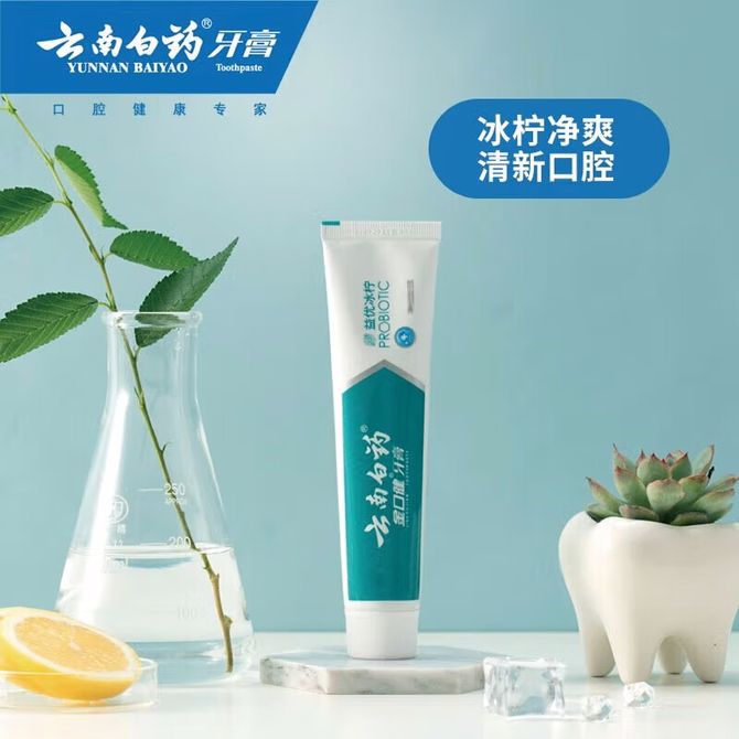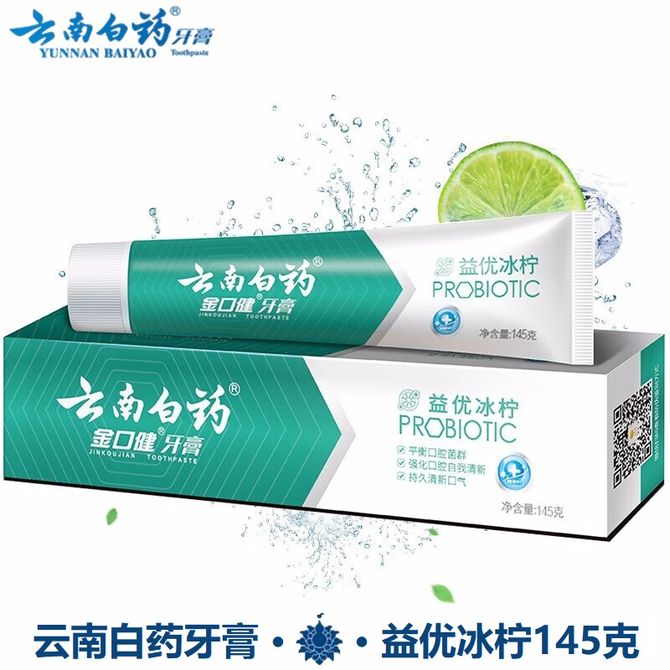 云南白药牙膏 益优冰柠145g 益生菌牙膏亮白清洁清新口气清火牙膏