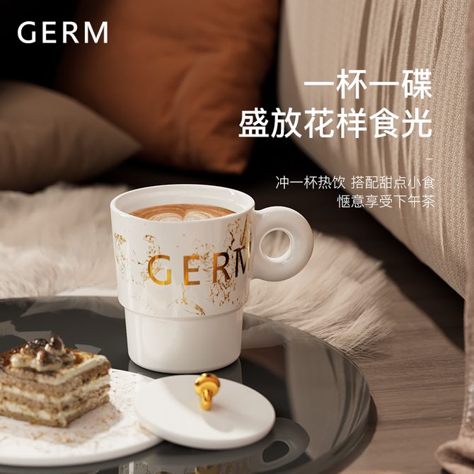格沵 GERM 鎏金马克杯 陶瓷水杯 可爱水杯 创意杯子