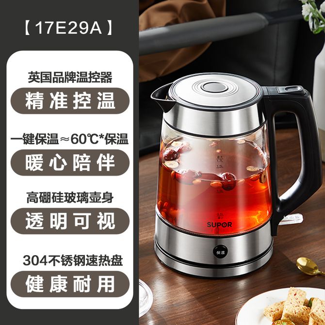 苏泊尔(SUPOR)玻璃电水壶热水壶高硼硅玻璃电热水壶 1.7L烧水壶 一键保温恒温 SW17-E29A 一键保温一整天,优质高硼硅玻璃,英国品牌温控器,1800W快速沸腾! 兑换价格 8700 里程 会员卡别 终身白金卡 白金卡 金卡 银卡 普通卡 儿童卡 商品已下架 1. 请联系卖家咨询 2. 逛逛北京致诚博雅贸易有限公司选择其他商品 组合销售 产品介绍 产品规格 售后服务 产品咨询 发现好货 美菱/MELNG 电水壶304不锈钢烧水壶家用1.7L大容量米白色 MH-K79A 3000 里程 美的/Midea 电热水壶家用大容量烧水壶热水壶双层防烫电水壶304不锈钢内胆自动断电分离式拔盖 MK-SH15X1-102 3000 里程 小熊/Bear 电水壶家用烧水壶 不锈钢自动断电恒温热水壶保温一体电热水壶1.5L容量 3000 里程 美的/Midea 电水壶 1.7L热水壶电热水壶304不锈钢烧水壶净甜家用大容量开水壶智能自动断电双层防烫 MK-SH17M301 3200 里程 美的(Midea) 热水壶 304不锈钢电水壶 聚水环不溅烫1.7L大容量电热烧水壶 MK-SH17X103 3300 里程