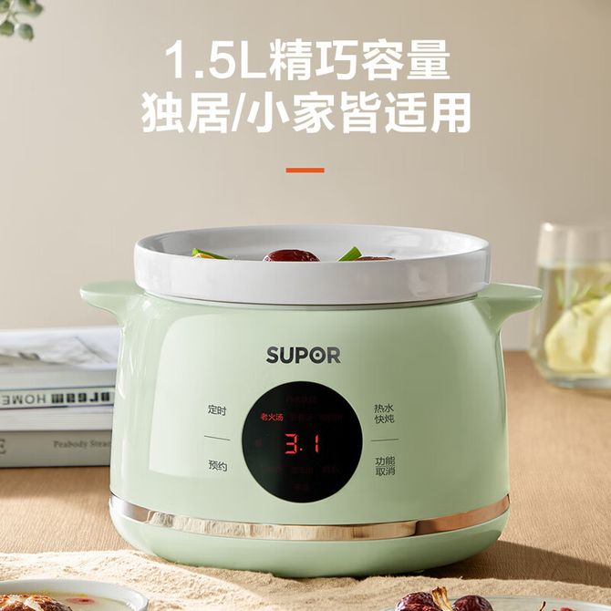 苏泊尔(SUPOR)电炖锅1.5L 电炖盅 煲汤锅 炖汤锅 煮粥神器 婴儿辅食锅 燕窝炖盅 bb煲 微电脑控制DZ15-YC869 优质白瓷内胆 7大智能菜单 智能预约定时 安全不溢锅 防干烧保护 防烫提手 兑换价格 8700 里程 会员卡别 终身白金卡 白金卡 金卡 银卡 普通卡 儿童卡 商品已下架 1. 请联系卖家咨询 2. 逛逛北京致诚博雅贸易有限公司选择其他商品 组合销售 产品介绍 产品规格 售后服务 产品咨询 发现好货 小熊/Bear 电炖锅1-2人小炖锅煮粥锅智能预约定时煲汤锅炖汤锅燕窝炖盅 4400 里程 苏泊尔(SUPOR) 电火锅家用不粘煎涮炖煮多功能4L大容量一体式大火力电煮锅不粘煎涮炖煮多功能料理锅 H40YK757 5700 里程 西屋/Westinghouse 多功能电煮锅电炖锅1.6L一锅多能WFB16A 11600 里程 苏泊尔(SUPOR) 电火锅 宿舍小电锅学生寝室一体泡面小火锅 多功能锅涮肉涮菜 1.7L 【 单锅】H17YK489 3000 里程 小熊(Bear)电炖锅电炖盅煮粥神器煲汤锅炖汤锅婴儿煮粥锅熬粥燕窝炖盅DDG-E15K2 4800 里程