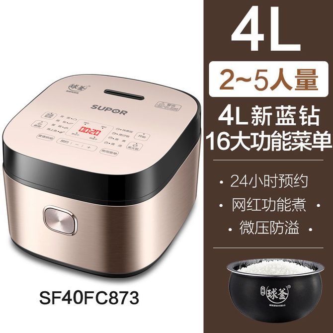 组合销售 产品介绍 产品规格 售后服务 产品咨询 发现好货 苏泊尔(SUPOR) 电饭煲电饭锅4L大容量 不粘内胆4-6个人前置大屏面板24小时预约上蒸下煮多功能家用智能SF40FC0063 7700 里程 美菱/MELNG 电饭煲3L触控式预约定时MF-LC3005 4400 里程 美的(Midea) 电饭煲 家用3L智能预约多功能电饭锅小型1-4人煮饭锅智能 白色 MB-FB30M161 7800 里程 康佳/Konka 迷你电饭煲小电饭锅2L容量智能温控12小时预约煮饭煮粥锅 4800 里程 美的/Midea 电饭煲电饭锅3-4个人家用4L大容量聚能釜金属机身大火力米饭锅【升级焖香阀】RE417 8700 里程