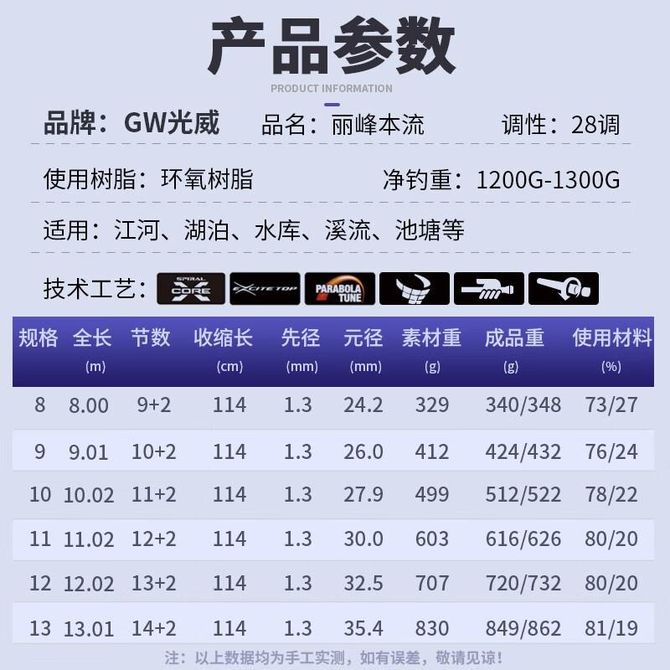 光威(GW)鱼竿手竿11米丽峰本流炮竿大长节传统钓鱼杆钓鱼竿长竿短线钓竿渔具