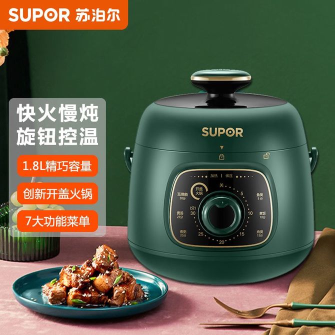 苏泊尔(SUPOR)一人食迷你电压力锅1.8L开盖火锅家用智能旋钮面板煲汤煮粥复古绿易清洁SY18YA-9061高压锅(1-3人) 1.8L迷你小容量 精致小巧 创新开盖火锅 7大功能菜单 一键旋钮控制 便携式把手可拆胶圈 兑换价格 15700 里程 会员卡别 终身白金卡 白金卡 金卡 银卡 普通卡 儿童卡 商品已下架 1. 请联系卖家咨询 2. 逛逛北京致诚博雅贸易有限公司选择其他商品 组合销售 产品介绍 产品规格 售后服务 产品咨询 发现好货 苏泊尔(SUPOR)电压力锅 6升大容量 智能触控 球釜双胆 开盖收汁 一键排压 SY-60YC8001Q 高压锅 16900 里程 苏泊尔(SUPOR) 5L电压力锅家用电高压锅双胆高压电饭锅煮饭智能预约 SY-50YC8186 11300 里程 美的/Midea 电压力锅 高压锅家用电压力煲智能预约电饭煲大容量多功能定时预约电饭煲3-8人单胆旋钮款4L MY-E4809 8700 里程 美的/Midea 电压力锅 上蒸下煮家用智能双胆电高压锅电饭锅多功能高压电饭煲电蒸锅5升 MY-YL50M3 10900 里程 美的/Midea 电压力锅 5L 一锅双胆 多功能家用易清洁双胆高压快煮上蒸下煮 高压锅 YL50X5-201 12700 里程