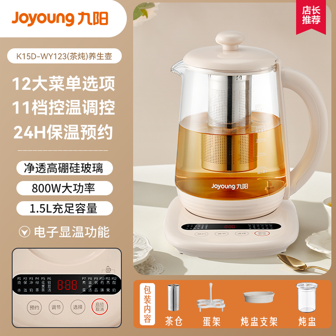 九阳(Joyoung)养生壶 煮茶器烧水壶 1.5升容量 煮茶壶多段保温迷你一人养生壶玻璃花茶壶智能恒温电热水壶 K15DWY-123带炖盅+茶漏+煮蛋架 12大功能,11档控温 1.5L 兑换价格 8700 里程 会员卡别 终身白金卡 白金卡 金卡 银卡 普通卡 儿童卡 商品已下架 1. 请联系卖家咨询 2. 逛逛北京致诚博雅贸易有限公司选择其他商品 组合销售 产品介绍 产品规格 售后服务 产品咨询 发现好货 九阳/Joyoung 养生壶1.5L茶具电茶壶煮茶壶花茶壶玻璃煮茶器煎药壶中药锅药膳电水壶烧水壶 3900 里程 九阳/Joyoung 养生壶迷你玻璃花茶壶煮茶器 12大功能11档温度 电水壶热水壶烧水壶 1.5L DGD1506BQ 3900 里程 美的/Midea 养生壶 1.5L家用多功能小型全自动办公室烧水壶加厚玻璃煮茶热水壶 MK-YS15P201 4200 里程 美的/Midea 养生壶 1.5L家用养生壶全自动玻璃烧水壶24h预约烧水壶12小时防干烧保护智能恒温 MK-YS15P202 3700 里程 美的/Midea 养生壶 1.5L全自动电热水壶 24h预约12小时智能恒温 14大功能11档控温 花茶壶煮茶器MK-Y12Q 3500 里程