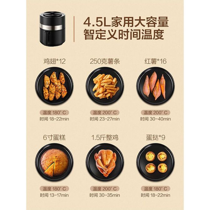 组合销售 产品介绍 产品规格 售后服务 产品咨询 发现好货 苏泊尔(SUPOR)空气炸锅 家用多功能4.2L大容量 烤箱薯条机 无油烟电炸锅 大功率 无油低脂煎炸锅KJ42D811 6500 里程 苏泊尔(SUPOR)空气炸锅家用3L大容量电炸锅 蒸汽嫩炸多功能无油烟煎炸薯条机烤箱KD30DQ815 21700 里程 美的/Midea 空气炸锅 家用5升可视炸锅金属内腔体微蒸汽多功能智能双旋控温电炸锅 KZE5089 10900 里程 美的/Midea 空气炸锅 可视 不用翻面 金属内腔 蒸汽嫩炸 三档烘烤风力 5L KZC5089 10700 里程 小熊/Bear 空气炸锅 4D漩烤不用翻面 全自动 5L实用大容量 可视 蒸汽嫩炸 控油脱脂 炸烤箱一体机 9100 里程