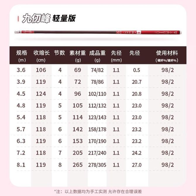 九仭峰轻量+竿梢+线组(7.2米以上是指8.1米)