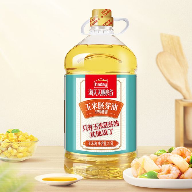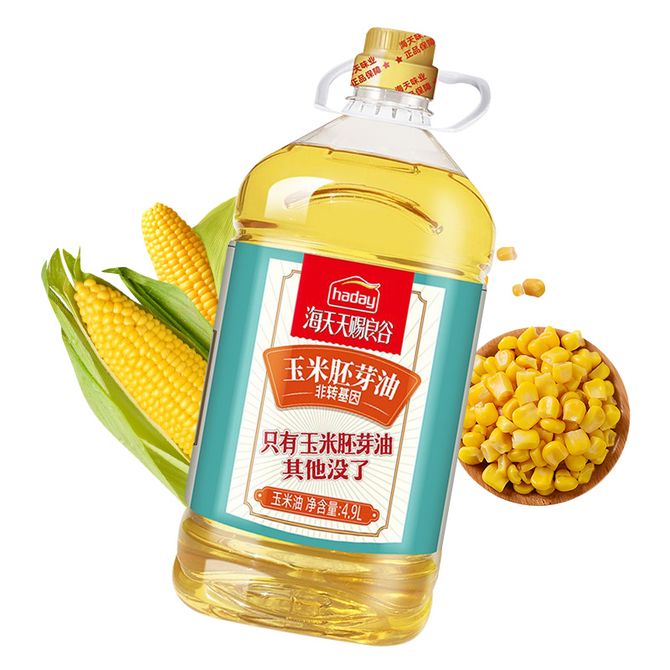 海天 天赐良谷0添加玉米胚芽油4.9L(非转基因 物理压榨 玉米油 植物油)