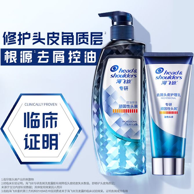 海飞丝去屑止痒洗发水300g+头皮乳护发素200g送80g*2油性头皮蓬松控油
