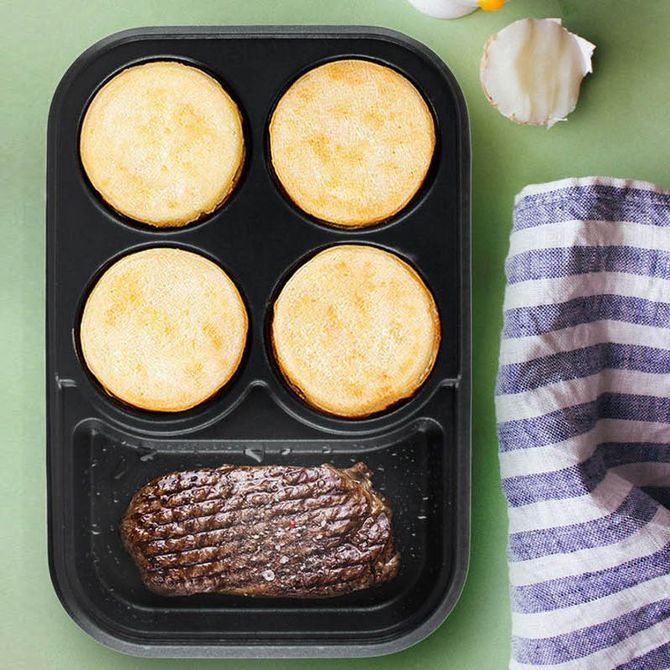 多功能迷你早餐机,煎饼锅+烤盘,不止做鸡蛋汉堡还可煎牛排。 智能控温,精准温度感应,自动调节火候。智能过温断电,安全系数更高。 聚能速烤,受热更均匀,速热不等待。 易操作,易成型,无需时刻守候,美食轻松搞定。 优质不粘涂层,不糊底,少油烟,每一口都健康。 一键启动,无需调节,拒绝繁琐。 小巧玲珑,不占地,收纳更方便。