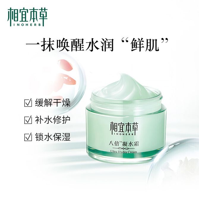 相宜本草 八倍凝水霜清爽补水50g 保湿滋润面霜水润焕亮舒缓修护滋养