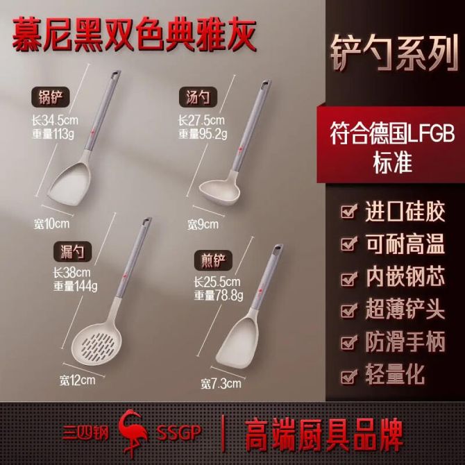 叁肆钢SSGP 慕尼黑双色铲勺套装 4件套 硅胶铲锅铲耐高温炒菜铲不粘锅专用铲子