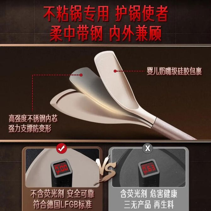 食品级接触硅胶 硅胶包裹不锈钢内芯 耐高温 轻量铲勺 易清洗
