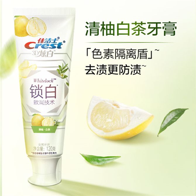 佳洁士香氛锁白牙膏清柚白茶120g 美白牙膏去黄去牙渍防渍 含氟防蛀固齿清新口气 (清柚白茶香)