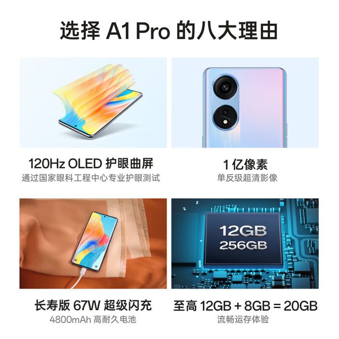 OPPO A1 Pro 超窄双曲屏 67W超级闪充1亿高像素 5G手机 全网通 8GB+128GB 月海黑