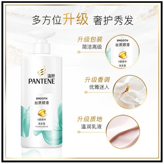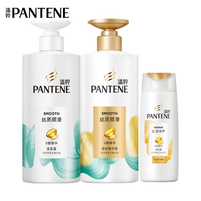 潘婷丝质顺滑洗护套装洗发水500g+护发素500g+洗发水80g 越洗越柔顺