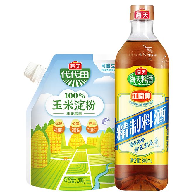 海天 精制料酒800ml+玉米淀粉200g(家用黄酒 食用生粉 烘焙原料 调料调味品)