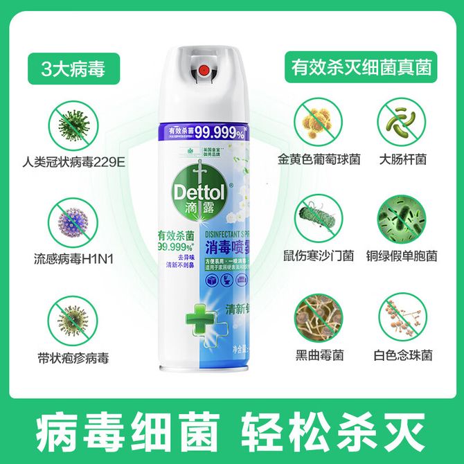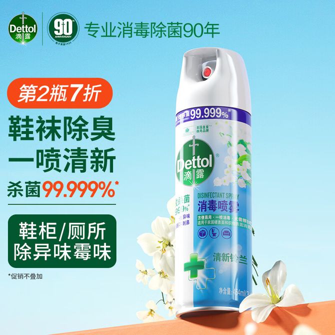 滴露Dettol 75%酒精消毒喷雾 清新铃兰454ml 马桶消毒杀菌鞋子除臭空气清新剂