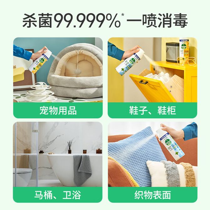 消毒+杀菌+除螨!1步搞定! 有效杀菌99.999%,小伤口适用,用得放心。 多种用途,居家消毒必备
