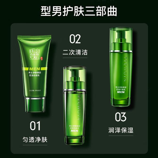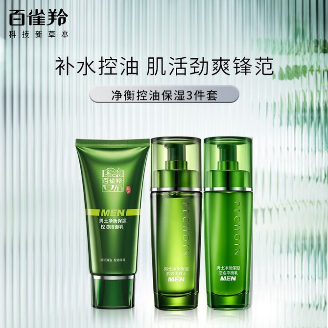 百雀羚净衡保湿男士护肤套装3件套 洁面乳100g+爽肤水100ml+平衡乳100ml 控油保湿