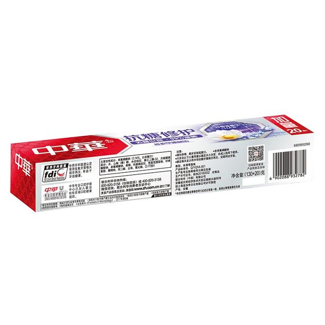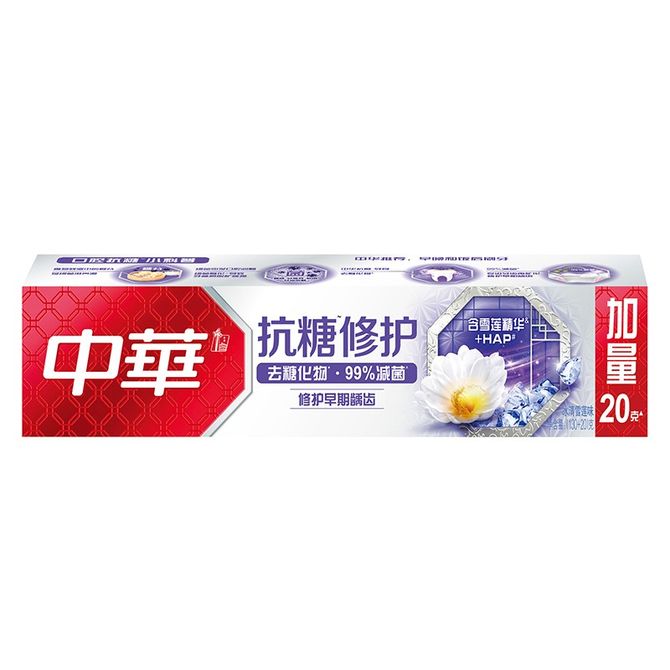 中华抗糖修护牙釉质牙膏 冰清雪莲味 (130+20)g*6支