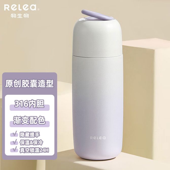 物生物(RELEA)小爱保温杯316不锈钢内胆水杯高颜值学生杯子保温杯450ML大容量便携带提环茶杯-凝香紫JV012235-0450-ZS 渐变配色,胶囊造型,316内胆,隐藏提手 兑换价格 3000 里程 会员卡别 终身白金卡 白金卡 金卡 银卡 普通卡 儿童卡 服务 由 广西桂雅文化传媒有限公司 发货并提供售后 颜色: 浅紫色 购买数量: 件 库存件 配送地址: 立即购买 加入购物车 成功添加到购物车 关闭 购物车共有 种商品 总金额为: 组合销售 产品介绍 产品规格 售后服务 产品咨询 发现好货 爱奇屋aichiw思悦保温杯AI-D97 1500 里程 希乐(cille) 领先保温杯XB-22172女生316水杯儿童上学专用大容量杯子冬季男款学生水壶500ml 2400 里程 爱奇屋 保温杯随行口袋杯 高颜值清新小巧水杯子280ml AI-D158 1100 里程 德铂(Debo) 480ml托马斯弹跳盖304不锈钢保温杯DEP-719 1500 里程 德铂Debo保温杯304不锈钢内胆双层茶杯白色DEP-719 1400 里程