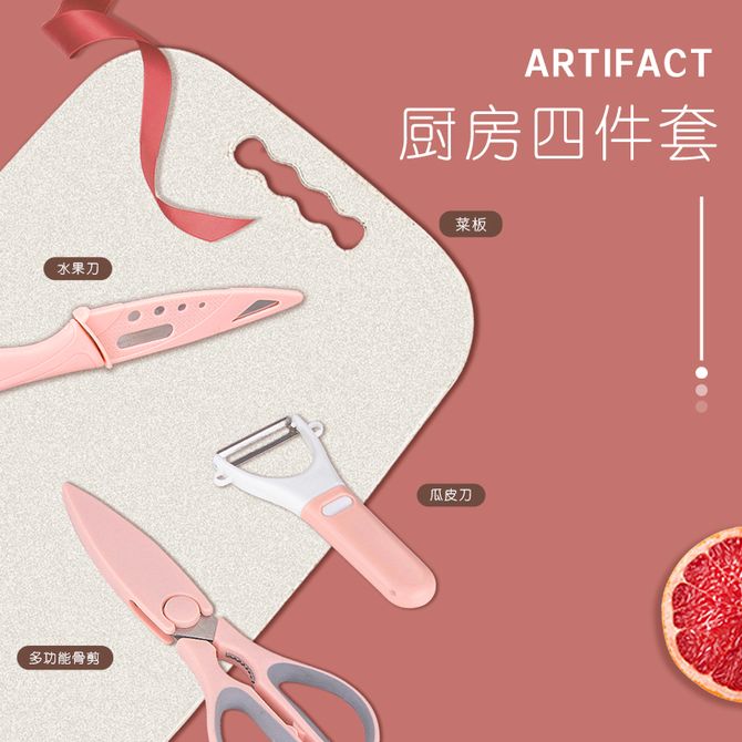 易铂(yispot)乐仕厨房工具四件套多功能骨剪水果刀瓜皮刀厨房工具刀具组合套装YP-9039