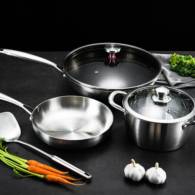 易铂(YisPot)斯凯特六件套不锈钢家用厨房汤锅煎锅炒锅锅铲配件实用厨具组合装YP90-09