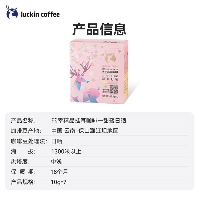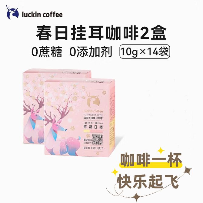 瑞幸咖啡春日挂耳咖啡0蔗糖添加中浅烘焙现磨手冲气锁鲜黑咖啡春日挂耳咖啡10g*7袋*2盒