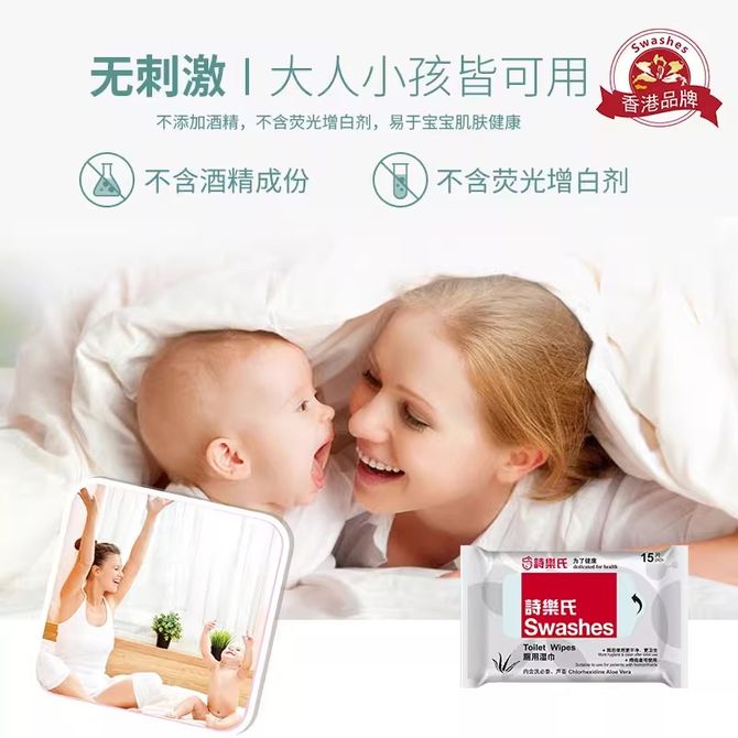 诗乐氏厕用湿巾15片*5包杀菌消毒卫生湿纸巾75张清洁擦护理便携厕纸