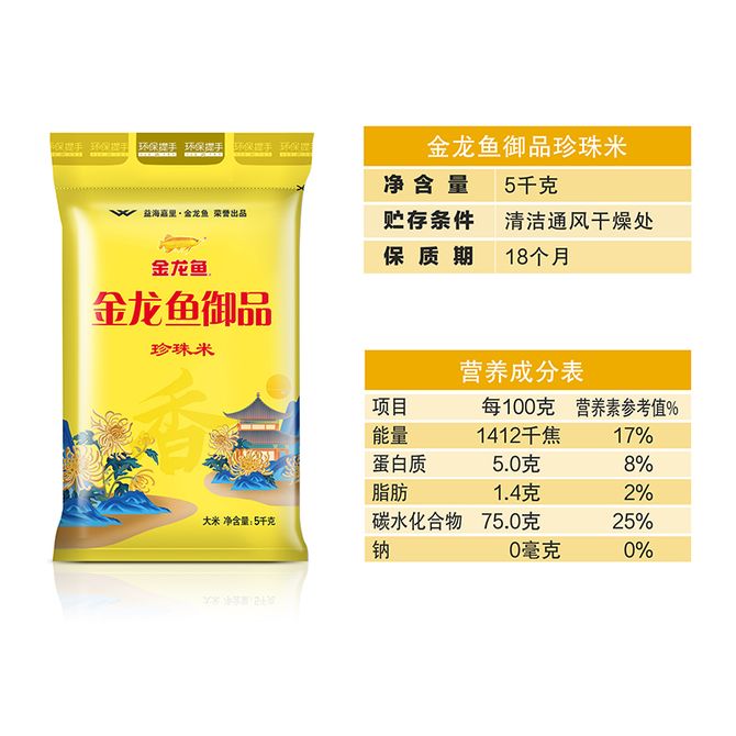 金龙鱼大米御品珍珠米5kg低氧保鲜更新鲜菊香版包装