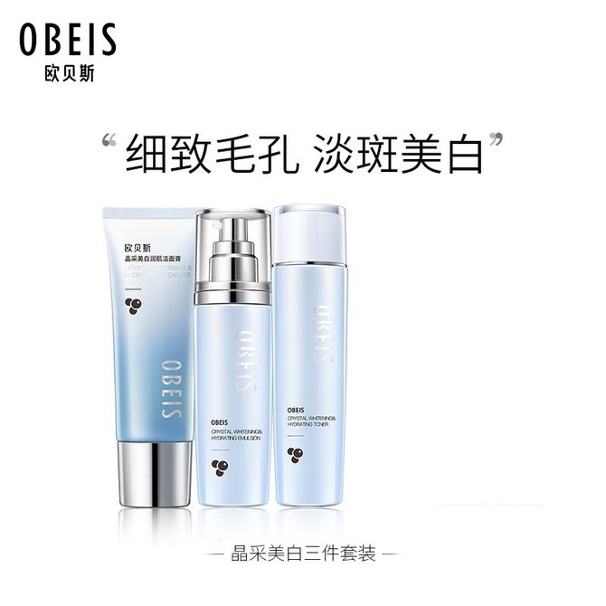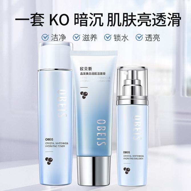 欧贝斯(obeis)护肤套装女晶采美白补水保湿化妆品护肤三件套补烟酰胺提亮肌肤洁面乳柔肤水乳液套装