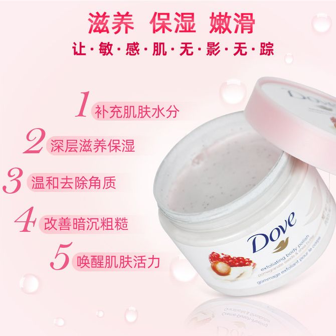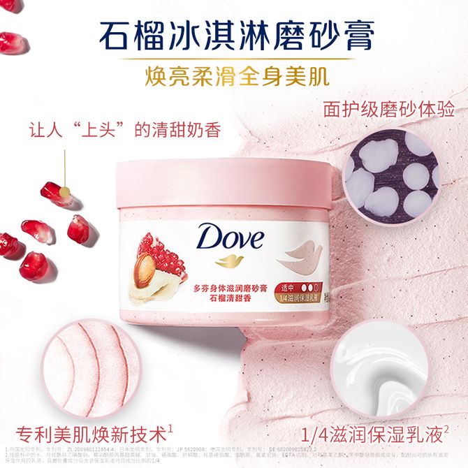 多芬身体磨砂乳霜(石榴)身体滋润磨砂膏乳霜清甜奶香温和磨砂持久留香298g