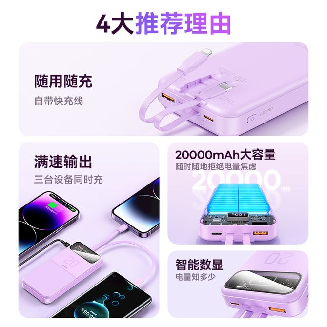 组合销售 产品介绍 产品规格 售后服务 产品咨询 发现好货 ZNNCO 充电宝20000毫安时超薄小巧迷你自带线大容量快充移动电源便携苹果华为小米2万mAh手机 4200 里程 睿量/Remax 磁吸无线充电宝 Magsafe快充 5000mAh超薄小巧便携移动电源 手机背夹迷你移动电源 适用于苹果华为小米手机 RPP-107 4600 里程 雷摄 T68S【3C认证可上飞机】充电宝10000毫安 移动电源 22.5W快充丨1万毫安丨多口输出 1700 里程 纽曼(Newmine) 自带四线充电宝 3C认证 LED智能数显10000毫安移动电源 AL03 经典黑 3000 里程 雷摄 【3C认证】LS-YDZJ01 10000毫安 四线多功能移动电源 黑色 2000 里程
