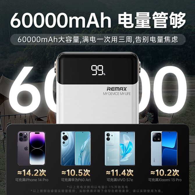REAMX6万毫安充电宝60000毫安时超大容量自带双线22.5W超级快充便携户外直播露营移动电源适用苹果华为小米三星 四输出二输入,苹果/安卓都能充,满足多种充电需求LED数显,不用盲猜,电量时刻在线多种快充协议,多种设备兼容可拆卸自带线,秒变充电线,出门无需再带线LED灯光,可做应急照明 兑换价格 13500 里程 会员卡别 终身白金卡 白金卡 金卡 银卡 普通卡 儿童卡 商品已下架 1. 请联系卖家咨询 2. 逛逛单象数码专营店选择其他商品 组合销售 产品介绍 产品规格 售后服务 产品咨询 发现好货 ZNNCO 充电宝20000毫安时超薄小巧迷你自带线大容量快充移动电源便携苹果华为小米2万mAh手机 4200 里程 睿量/Remax 磁吸无线充电宝 Magsafe快充 5000mAh超薄小巧便携移动电源 手机背夹迷你移动电源 适用于苹果华为小米手机 RPP-107 4600 里程 纽曼(Newmine) 自带四线充电宝 3C认证 LED智能数显10000毫安移动电源 AL03 经典黑 3000 里程 纽曼 AL35大容量10000毫安时 22.5W超级快充充电宝 超薄小巧便携迷你 3700 里程 雷摄 【3C认证】LS-YDZJ01 10000毫安 四线多功能移动电源 黑色 2000 里程