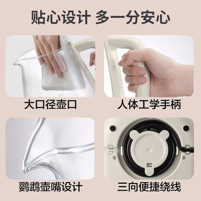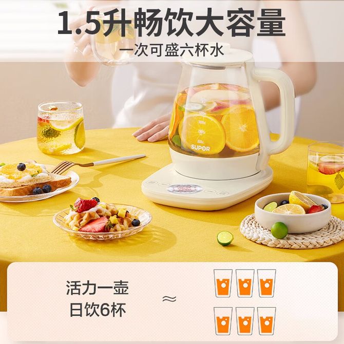 组合销售 产品介绍 产品规格 售后服务 产品咨询 发现好货 九阳/Joyoung 养生壶1.5L茶具电茶壶煮茶壶花茶壶玻璃煮茶器煎药壶中药锅药膳电水壶烧水壶 3900 里程 九阳/Joyoung 养生壶迷你玻璃花茶壶煮茶器 12大功能11档温度 电水壶热水壶烧水壶 1.5L DGD1506BQ 3900 里程 美的/Midea 养生壶 1.5L家用多功能小型全自动办公室烧水壶加厚玻璃煮茶热水壶 MK-YS15P201 4200 里程 美的/Midea 养生壶 1.5L家用养生壶全自动玻璃烧水壶24h预约烧水壶12小时防干烧保护智能恒温 MK-YS15P202 3700 里程 美的/Midea 养生壶 1.5L全自动电热水壶 24h预约12小时智能恒温 14大功能11档控温 花茶壶煮茶器MK-Y12Q 3500 里程