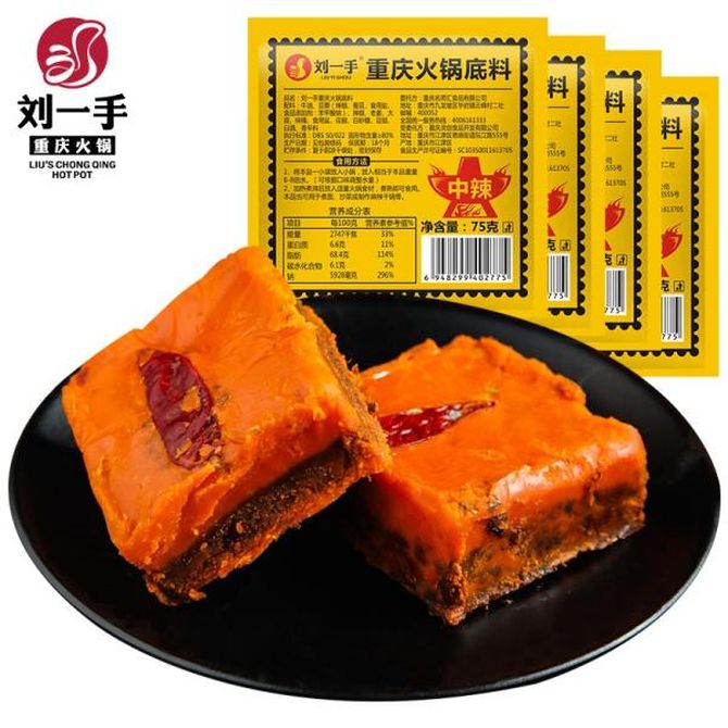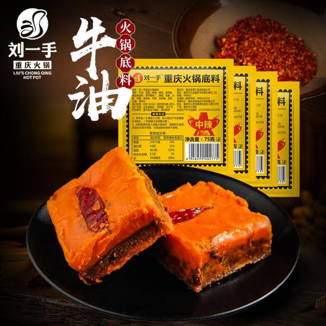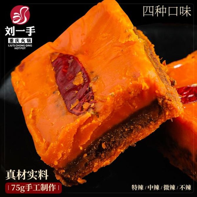 刘一手重庆火锅底料75g小包装一人份家用4味可选手工火锅底料【中辣】牛油75g*4